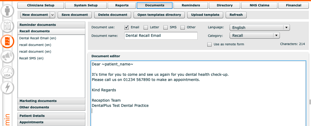 Keeping recalls up to date is critical because it allows you to communicate with patients with no upcoming appointments. To check this, simply run a report ‘Recalls passed' in the Appointments section and update patient's recalls.