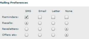 *** Recalls will be sent through the patient's preferred method of contact. If the patient hasn’t designated a preferred method, the recall will automatically be sent as a text message, provided there is a mobile number on records.