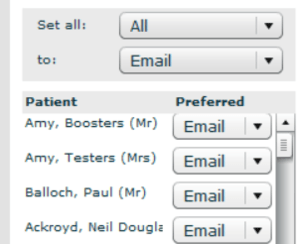 If you want to send all recalls using an approach that overrides the patient's preferred method of contact, select "Set all" and then the appropriate format.