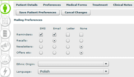 2. In the Patient Record → Preferences, select the patient’s preferred language.