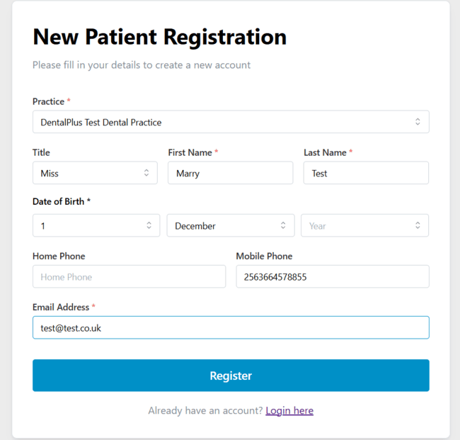 From the patient’s perspective, the online booking system works as follows: patients access the system through a link, where they can either log in to their online account or register with the practice. They only need their email address and date of birth, and a temporary password will then be sent to their email, allowing them to log in.