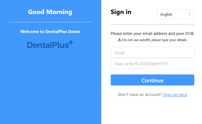 The system uses the patient’s email address and date of birth for identification.