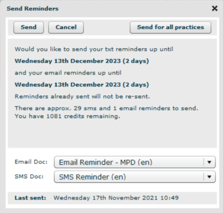 Auto reminders can be configured as a Windows scheduled activity. Simply tell us what time the reminders should be sent and how many days before the appointment, and we will set up the system to work automatically every day. Call support on 01903 899933 or email to set up automatic reminders.