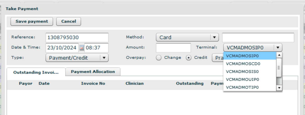 If you wish to take a future payment directly from the terminal