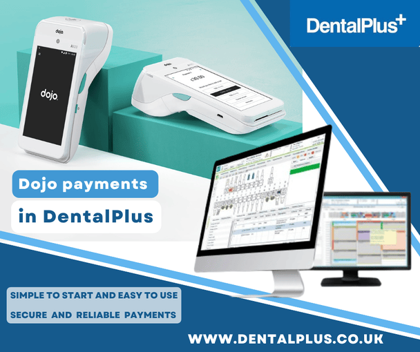 Sign up with Dojo, connect a card machine to DentalPlus and take payments in seconds. It is quick, simple, and secure.