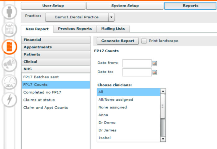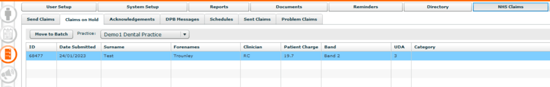 After submitting all FP17 claims appear in the ‘ Send Calims’ section that can be found in Admin→ NHS claims → Send Claims