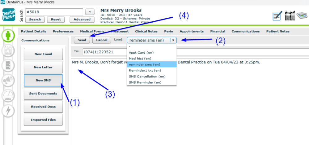 (4) Once you are done with making adjustments to your dental Sms single left click “Send”