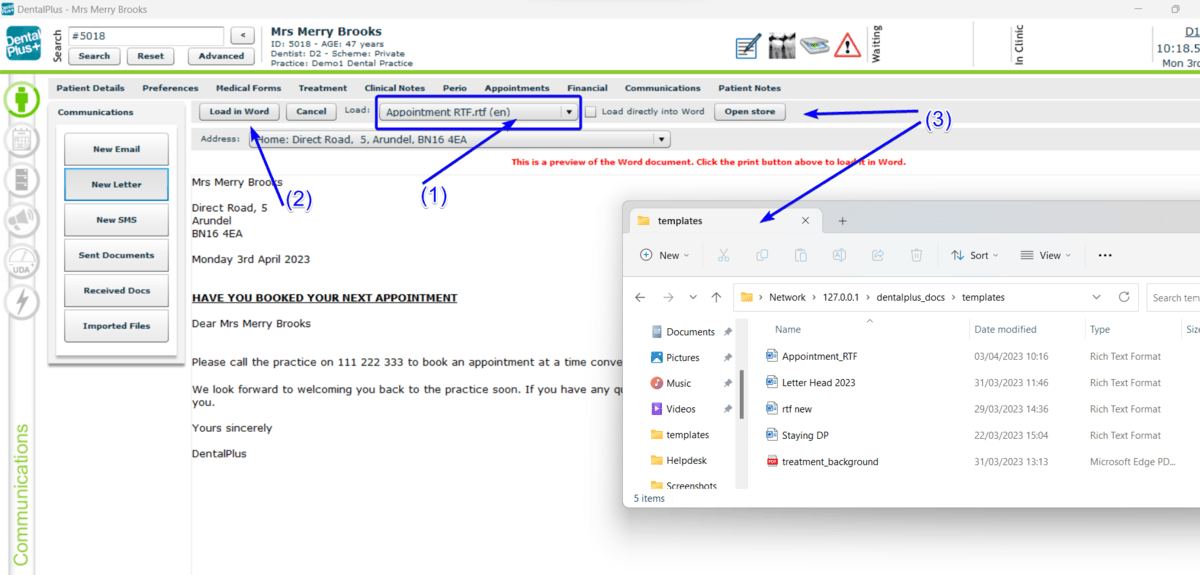 (3) ‘Open Store’ button opens the folder with RTF templates. Any RTF-template can be created, saved and pasted here.