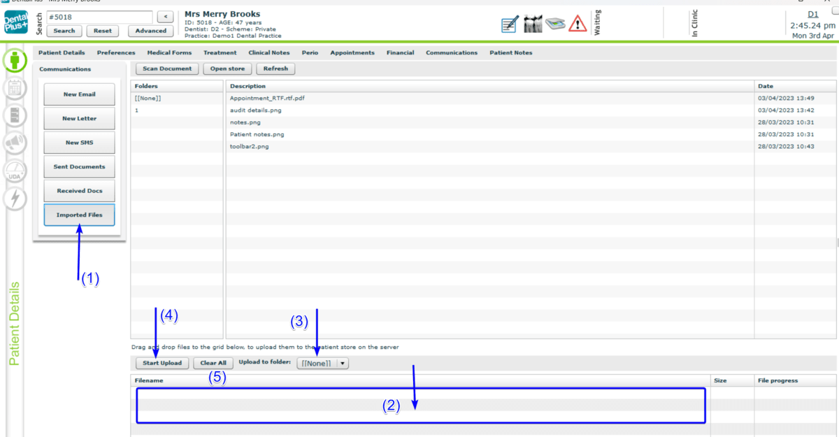 Once scanned, the document will be stored in Patient Record > Communications > Imported Files. Here you can load the document when you need.