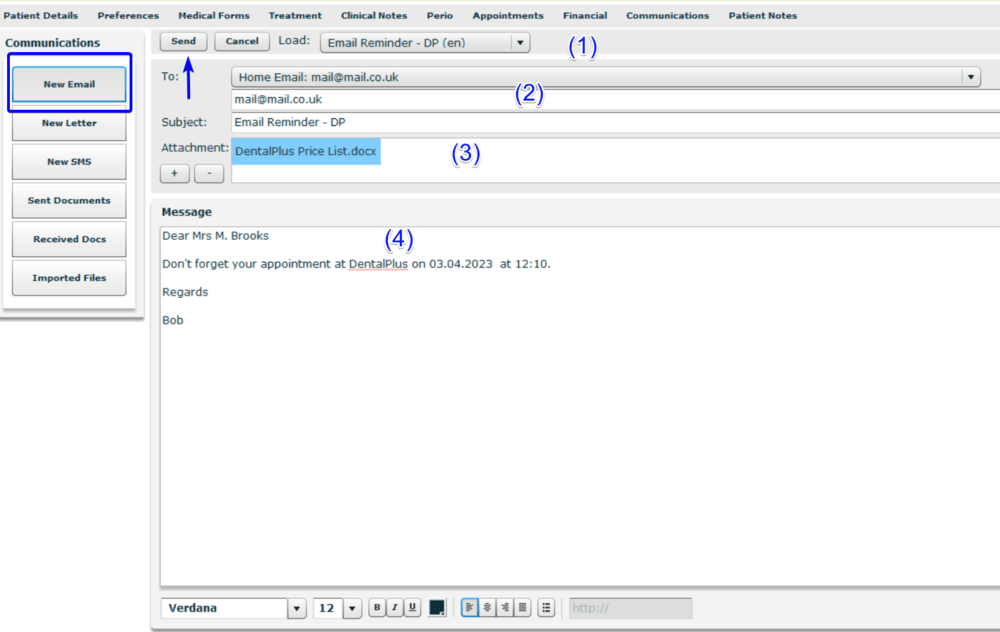 (5) Click ‘Send’. The patient will receive this email immediately.