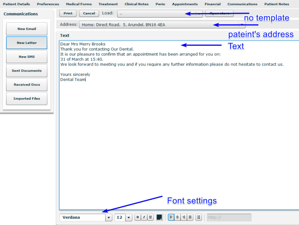 Left click on the ‘New Letter’ button opens a blank letter window.