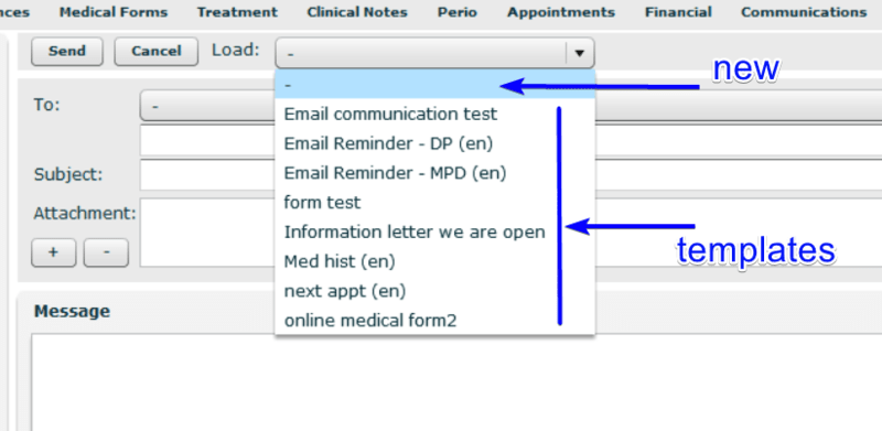 (2) Create new SMS with template . Single left clicking on the ‘Load’ drop-down to produce a list of available SMS templates. Single left click on the SMS required and a preview will load.